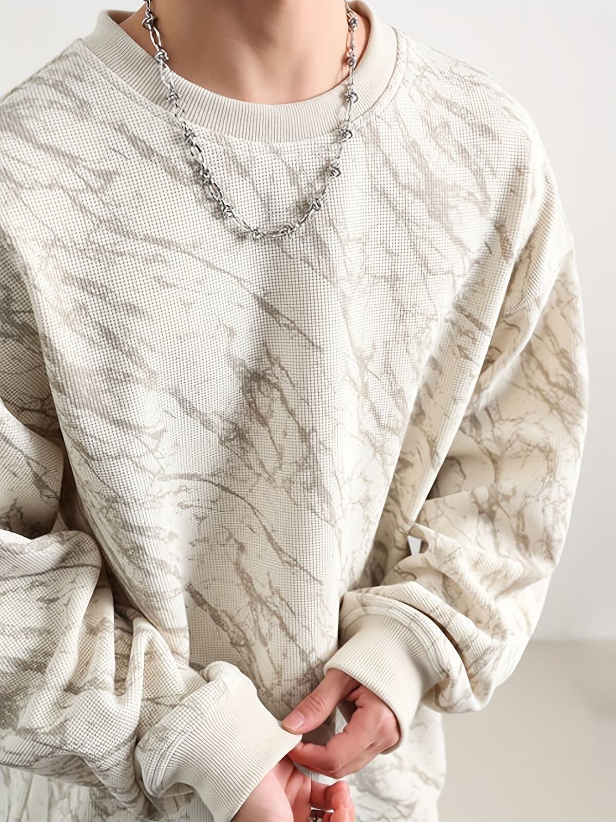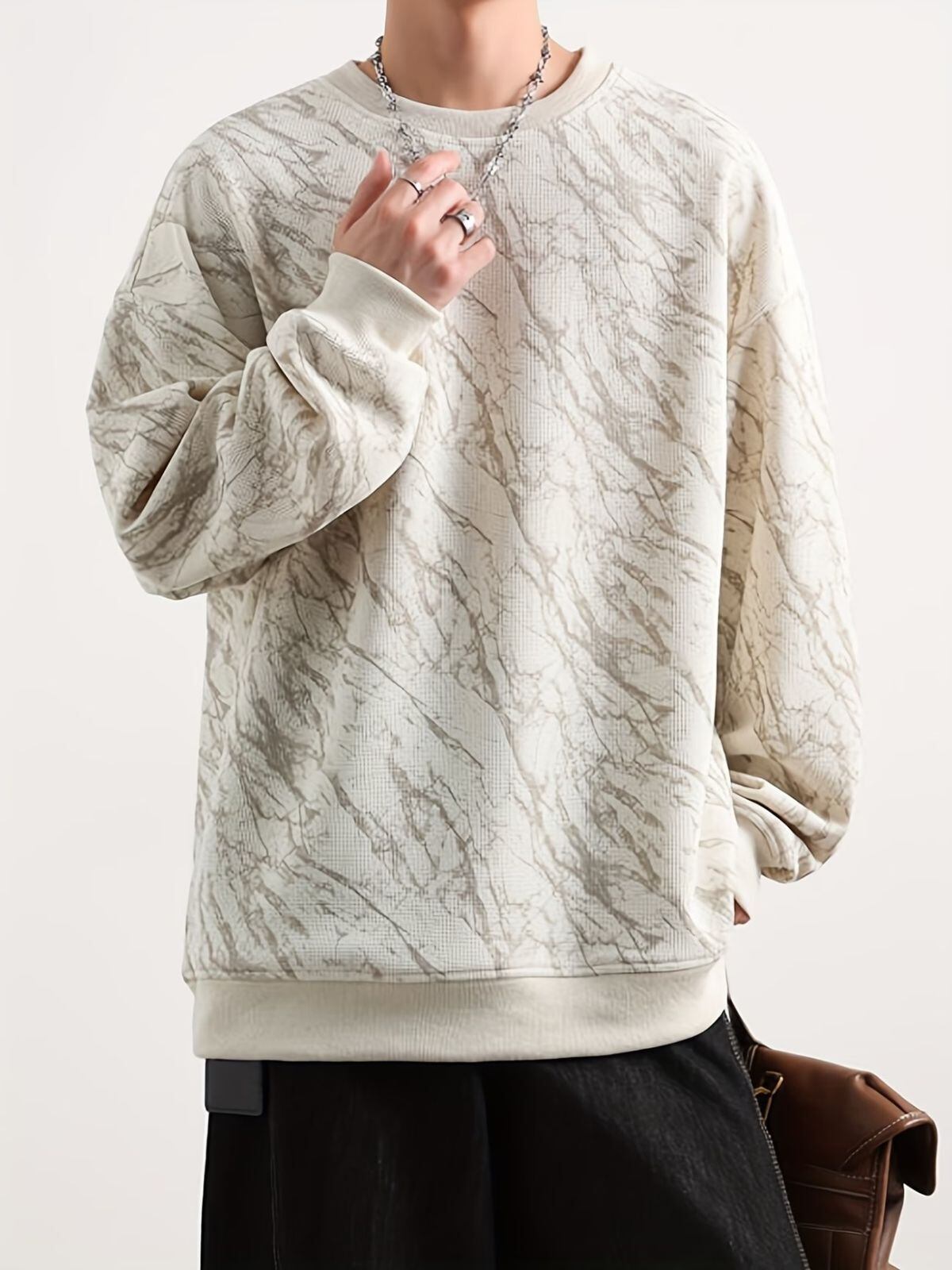 メンズ スウェット トレーナー クルーネック オーバーサイズ ルーズフィット 総柄 プリント カジュアル ストリート 春 秋 冬 重ね着 インナー 普段着 長袖 韓国ファッション おしゃれ トップス