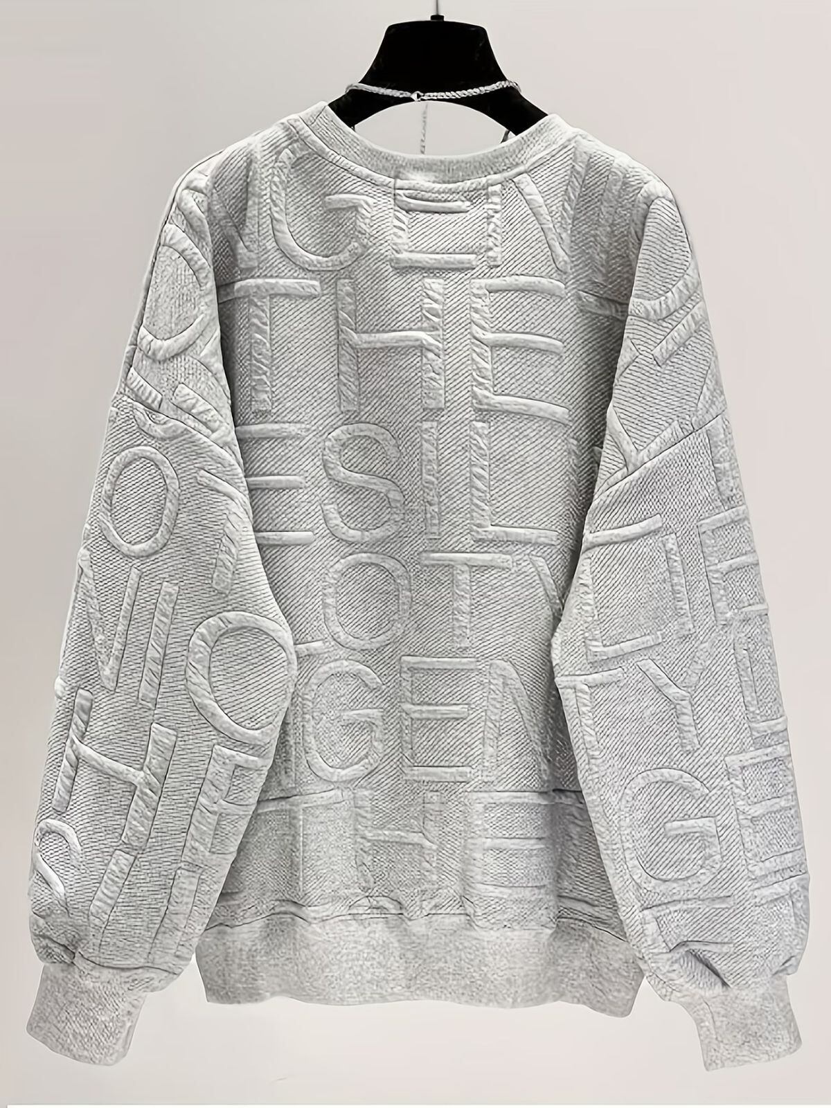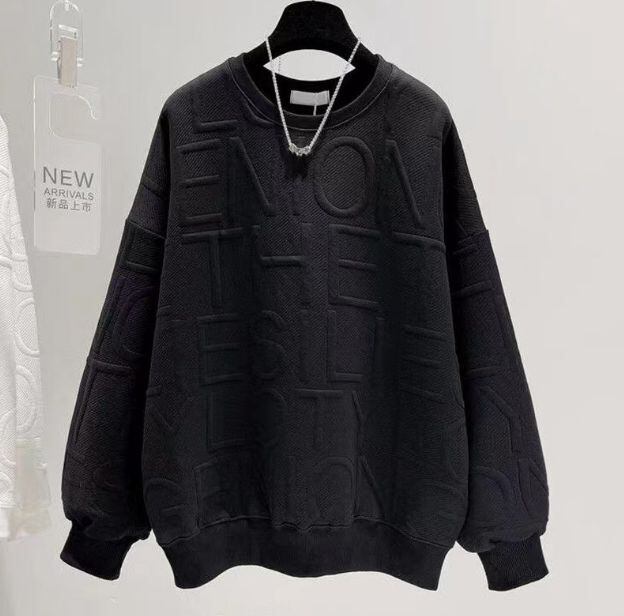 メンズ スウェット トレーナー クルーネック プルオーバー ルーズフィット オーバーサイズ ストリート 韓国ファッション 3Dエンボス ロゴ 長袖 ユニセックス レディース カジュアル 春 秋 冬 通勤 通学 普段着 伸縮性 ペアコーデ