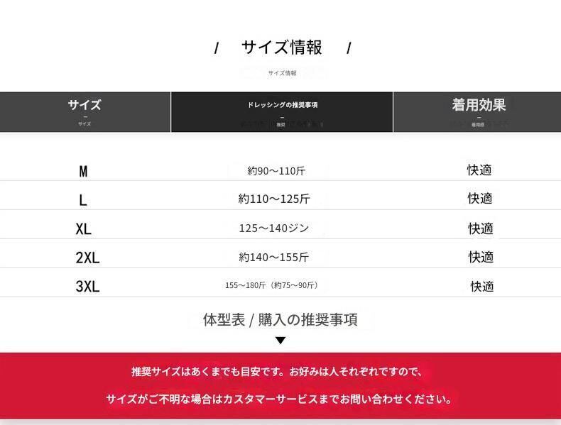 サイズ:M、L、XL、2XL、3XL、4XL、5XL