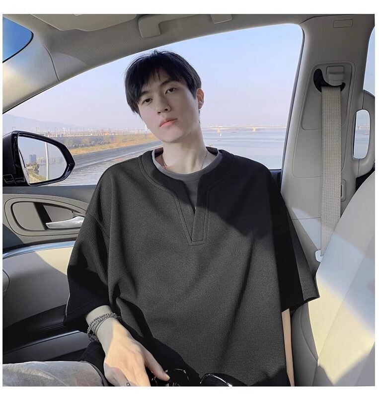 「メンズ Vネック 半袖Tシャツ 2in1 レイヤード風 ワッフル生地 ルーズフィット アウトドア スポーツ ハイキング対応 カジュアルトップス」をご覧ください。重ね着風デザインが映えるこのTシャツは、快適なワッフル素材を使用した夏にぴったりなアイテムです!ルーズフィットのシルエットは、動きやすさとリラックスした着心地を実現しています。カジュアルなスタイルにも、アウトドアやスポーツシーンにも最適で、さまざまなコーディネートに活躍すること間違いなしです。さらっとした肌触りで汗を吸収し、暑い日でも快適に過ごせる一枚です。