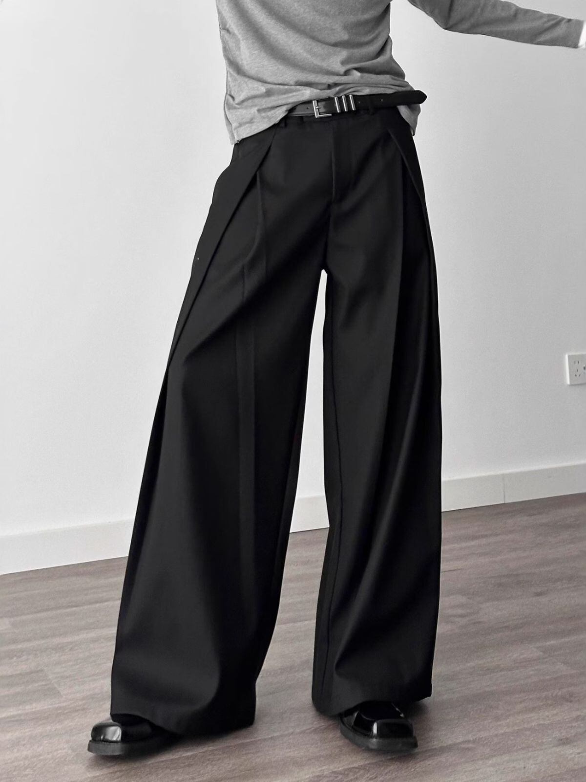 メンズ ワイドパンツ ワイドレッグ Aライン パンツ レディース 3Dプリーツ ユニセックス カジュアル モード 韓国ファッション ドレープ ゆったり 体型カバー 無地 ストレッチ ボタン デザイン トラウザーズ フロア丈 レギュラー丈 秋冬 ロングパンツ