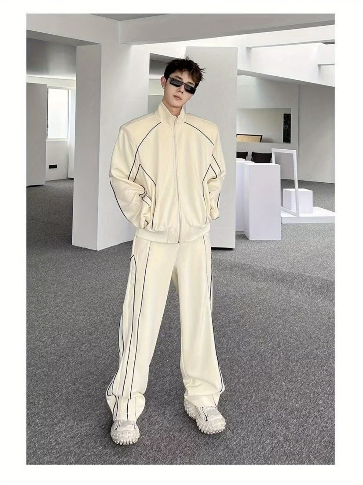 メンズ カジュアルスーツ セットアップ 2点セット ジャケット パンツ ワイドパンツ タンドカラー ゆったり オーバーサイズ 韓国ファッション 春 秋 おしゃれ トレンド 無地 通勤 通学 大人 きれいめ 上下セット 人気 快適 着回し 春服