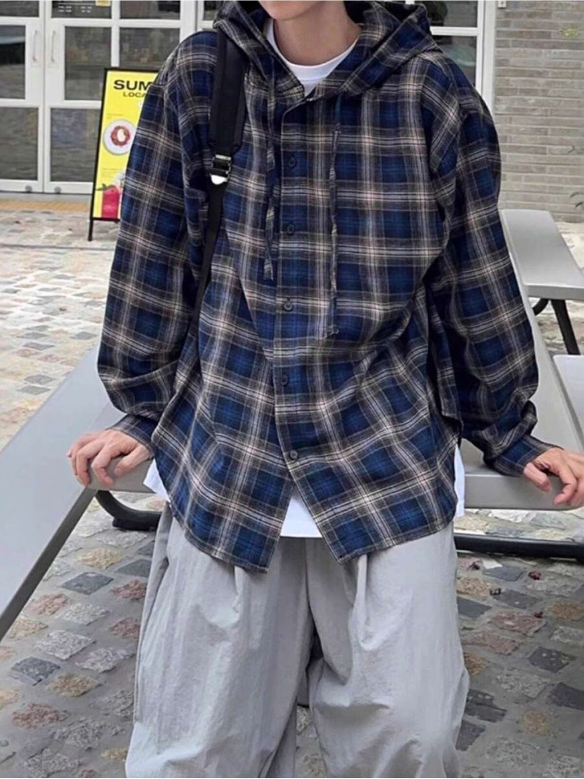 メンズ フード付きシャツ パーカー シャツパーカー 長袖 ユニセックス ストリート 韓国ファッション カジュアル 春服 秋服 オーバーサイズ ゆったり トップス フーディー 人気 トレンド おしゃれ 男女兼用