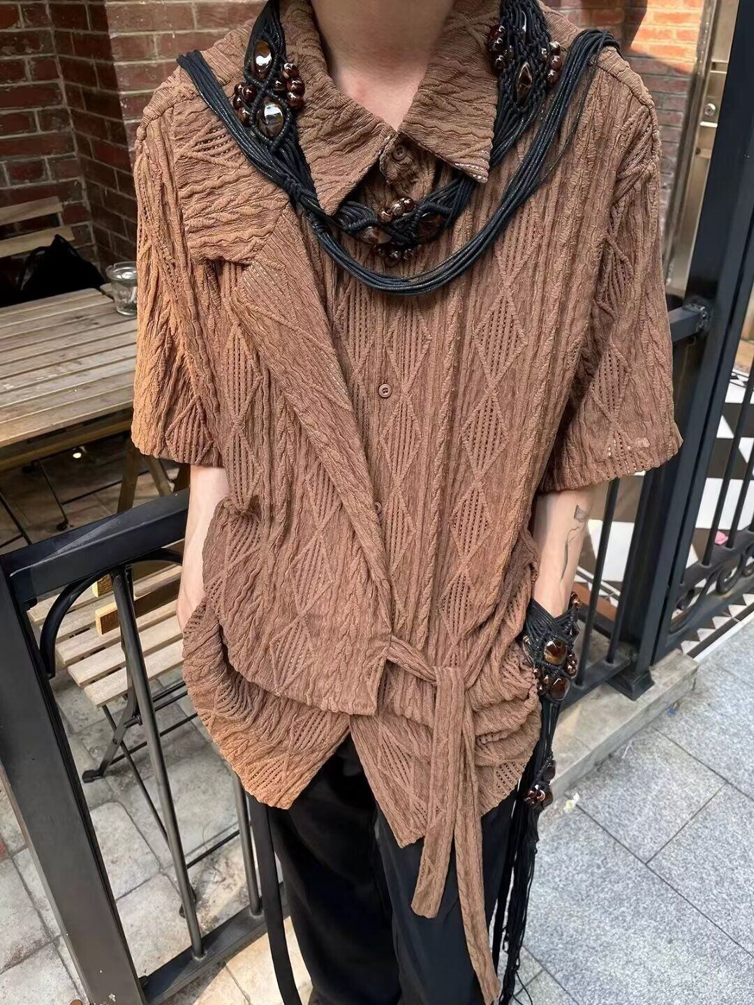 「ユニセックス ヴィンテージ ジャカード 透かし彫り 半袖シャツ 新中華風 パッチワーク 縁取りデザイン 2025夏 カジュアルトップス」をご覧ください。新中華風のデザインが際立つこの透かしジャカードシャツは、夏の必需品です。涼しげな素材は風通しが良く、暑い日でも快適な着心地を提供します!パッチワークと縁取りデザインが uniqueness を加え、カジュアルスタイルに華やかさをプラス。友達とのお出かけやリラックスした日常にぴったりな一着です。おしゃれを楽しみたい方におすすめのアイテムです!