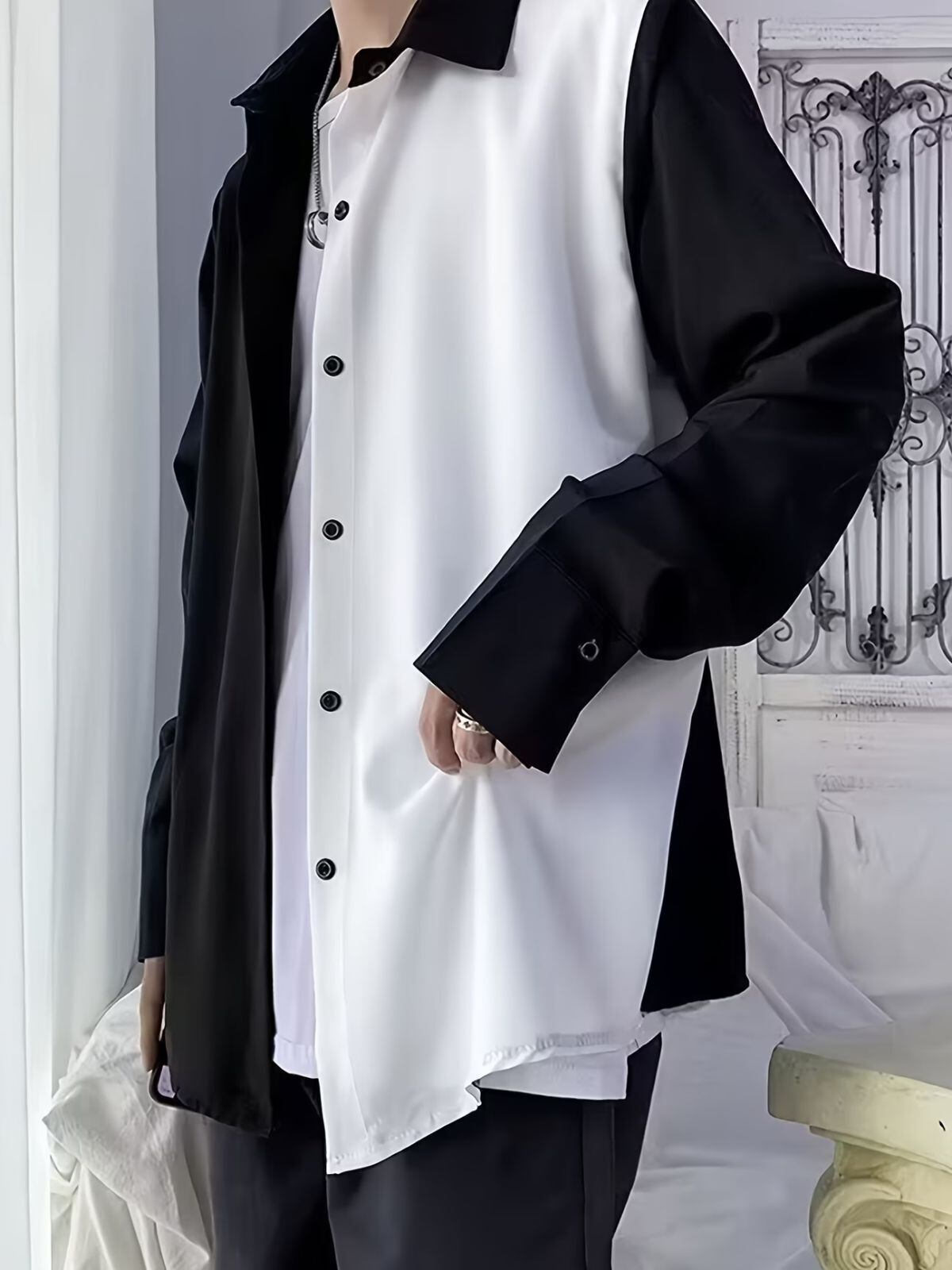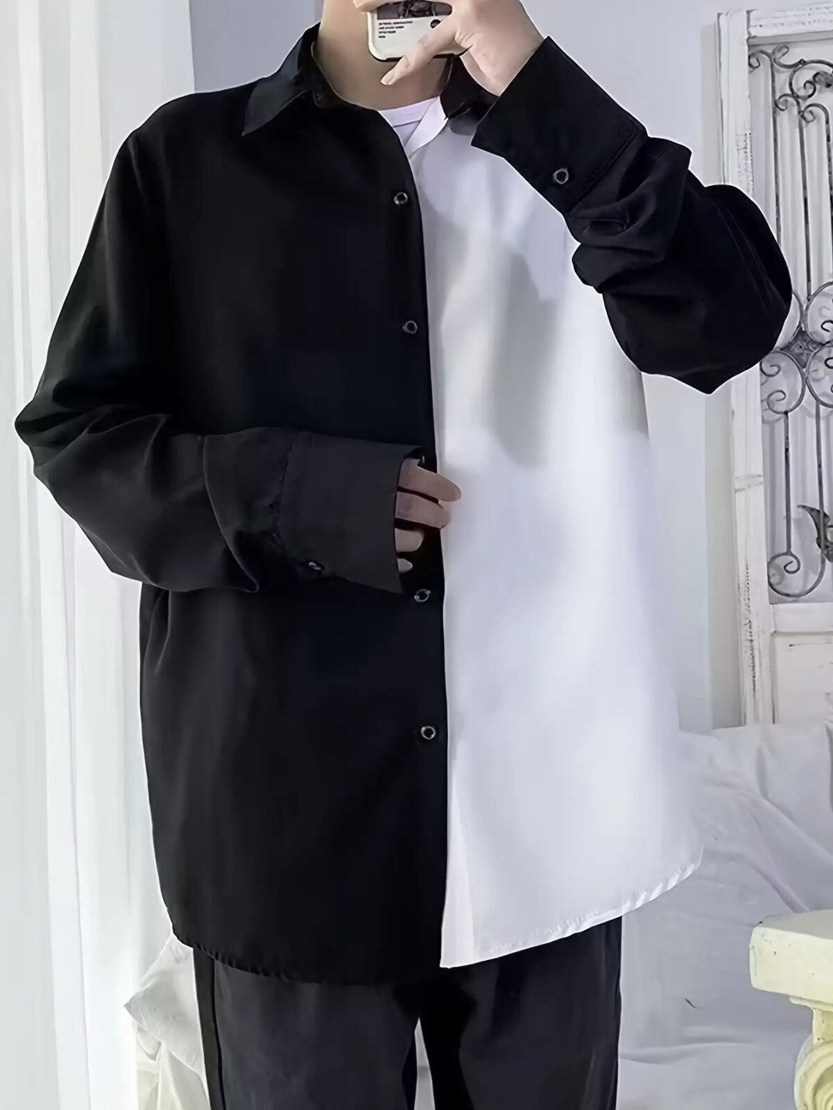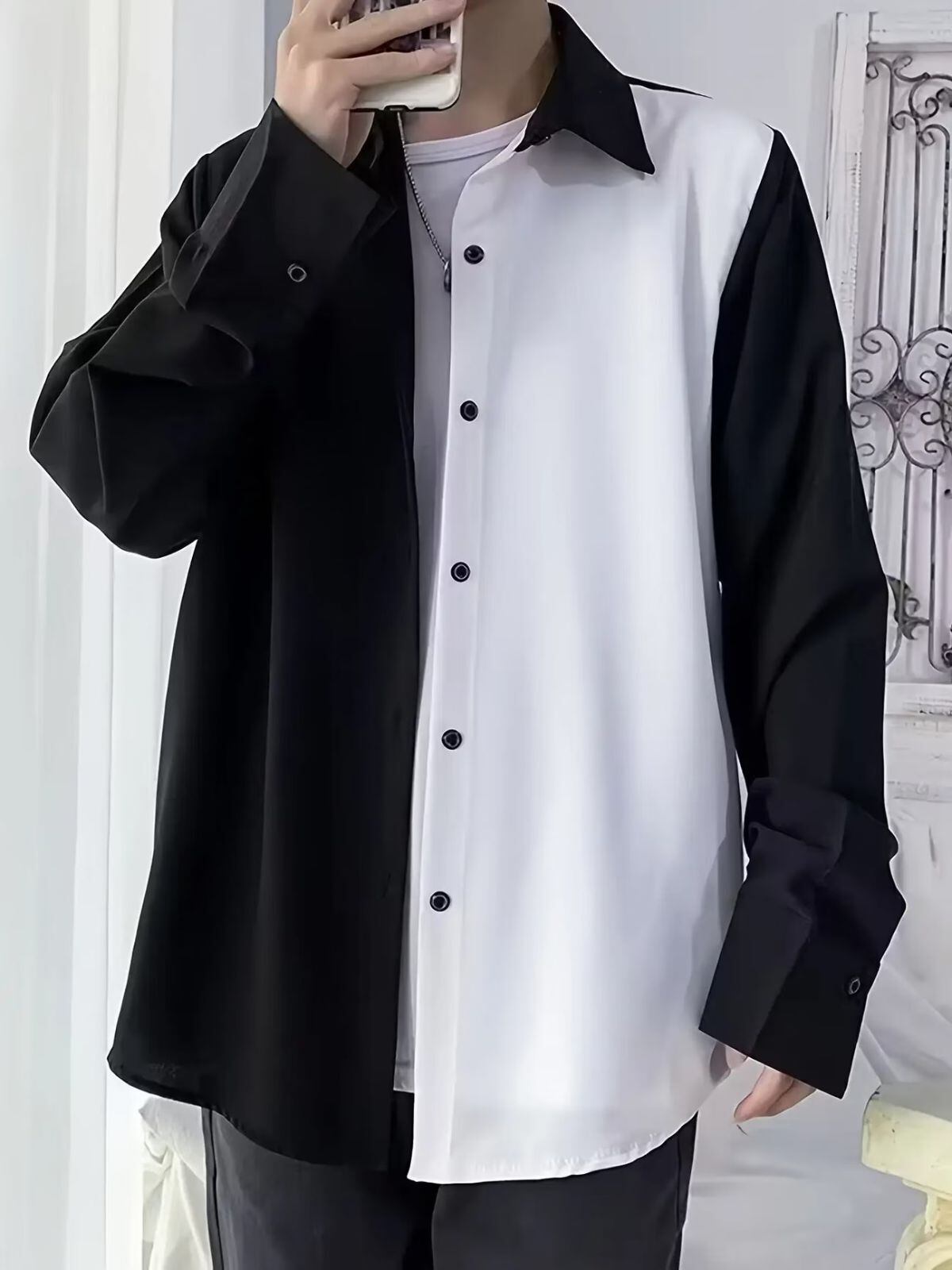 メンズ シャツ 長袖 ロングスリーブ 韓国ファッション 韓国風 春服 秋服 モノトーン ブラック ホワイト カジュアル トレンド おしゃれ スタイリッシュ シンプル 羽織り トップス メンズコーデ 春秋 人気