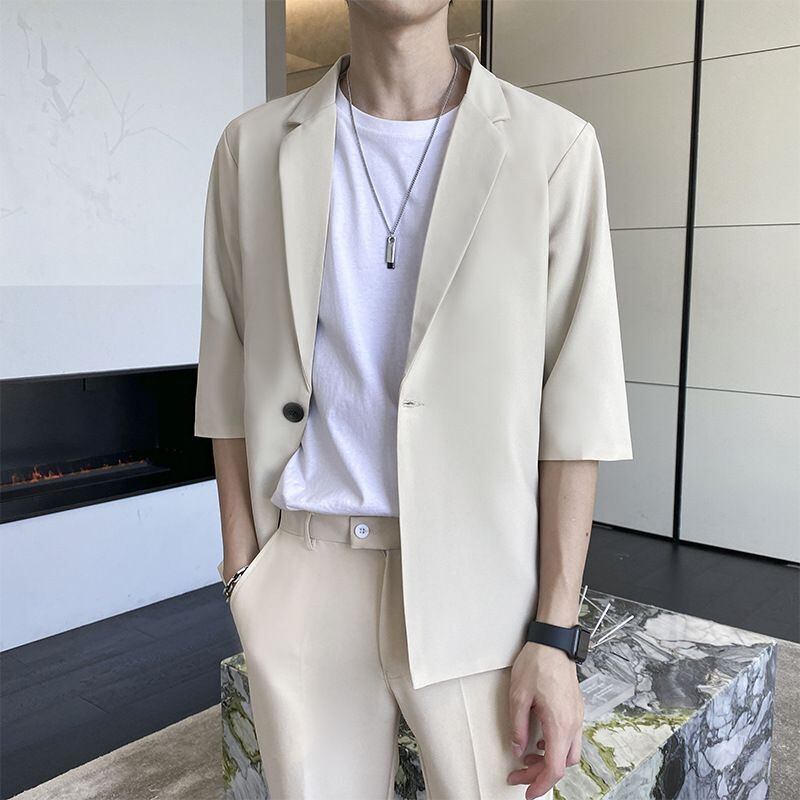 韓国風 カジュアル ブレザー 7分袖 ルーズフィット ゆったり トレンド ジャケット 軽量 羽織り メンズ春夏トップス