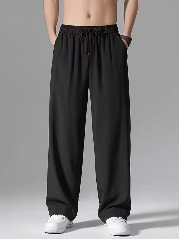 メンズ 超伸縮 ワイドレッグパンツ 冷感 薄手 ドローストリング 吸湿速乾 ルーズフィット ストリート カジュアル 夏用