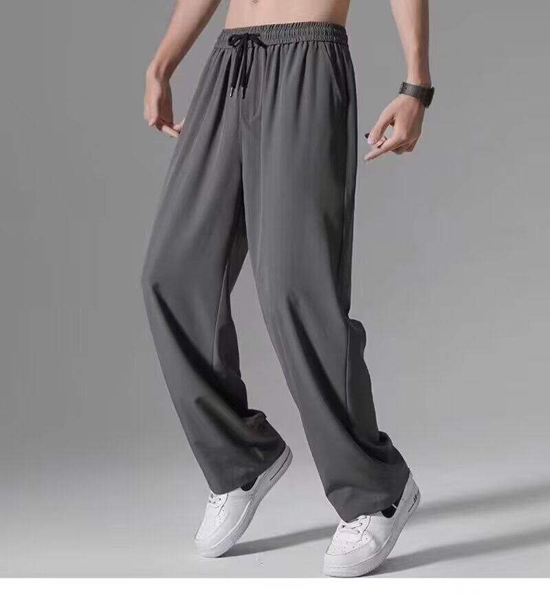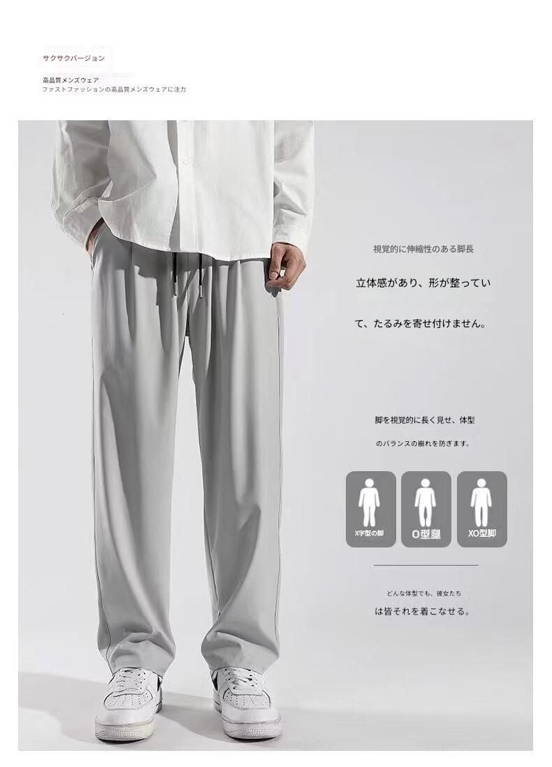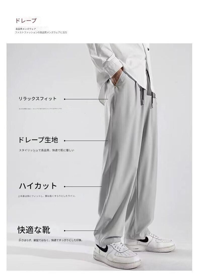 メンズ 超伸縮 ワイドレッグパンツ 冷感 薄手 ドローストリング 吸湿速乾 ルーズフィット ストリート カジュアル 夏用