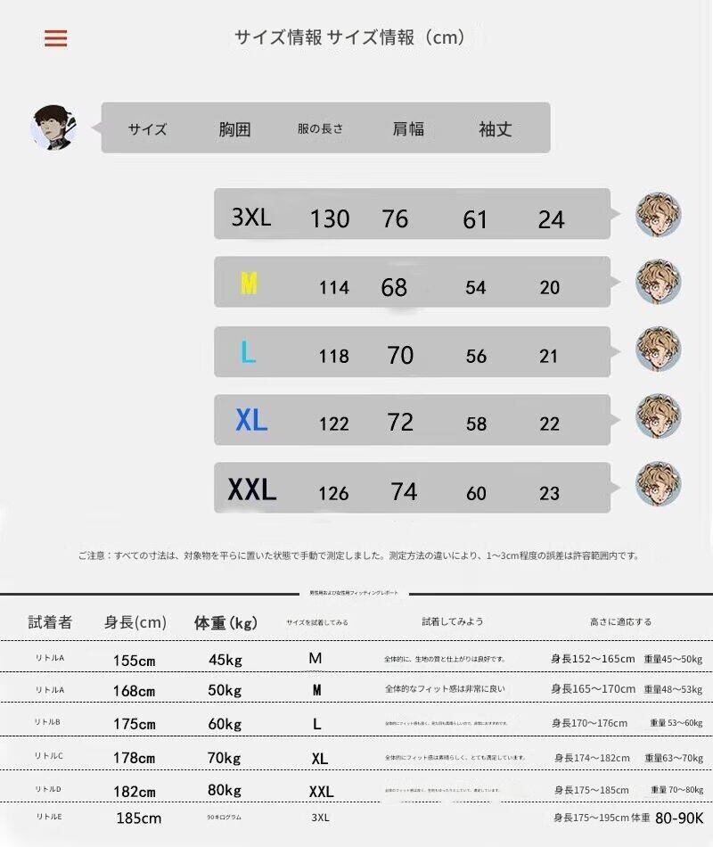 サイズ:M、L、XL、2XL、3XL
