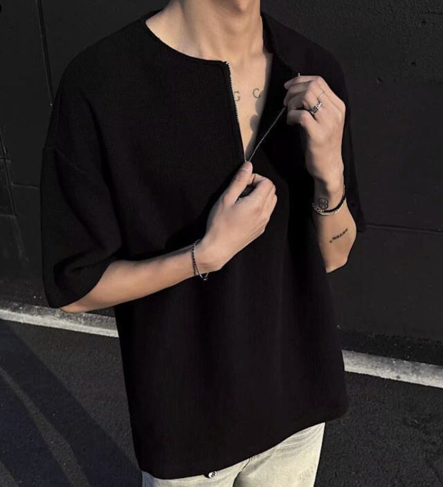 「メンズ ワッフル 半袖Tシャツ ハーフジップ ルーズフィット 夏用 軽量 通気性 クリーンフィット カジュアルトップス」をご覧ください!このTシャツは、ワッフル生地とハーフジップデザインが特徴で、涼しさを感じながらスタイリッシュに決まる夏のマストアイテムです。軽量な素材と通気性の良さにより、暑い夏でも快適に過ごすことができます。ルーズフィットのシルエットが体型を気にせずリラックス感を与え、カジュアルなコーディネートにぴったりです。このTシャツを取り入れて、快適な夏のおしゃれを楽しんでください!