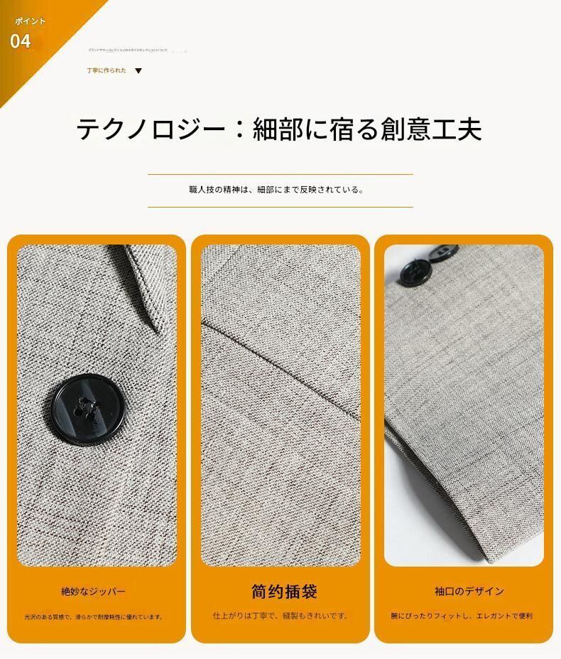 「メンズ 春夏 ブレザージャケット シングルブレスト ノッチドラペル 長袖 軽量 ビジネスカジュアル ワークウェア対応 アウター」をご覧ください!このブレザージャケットは、軽やかで上品なデザインが特徴で、春夏の季節にピッタリな万能アイテムです。シングルブレストとノッチドラペルのスタイルは、ビジネスカジュアルからカジュアルなコーディネートまで幅広く対応。軽量素材を使用しているため、暑い日でも快適に着用でき、忙しいビジネスマンの強い味方となります。このブレザージャケットを取り入れて、あなたのスタイルをワンランクアップさせてみてください!