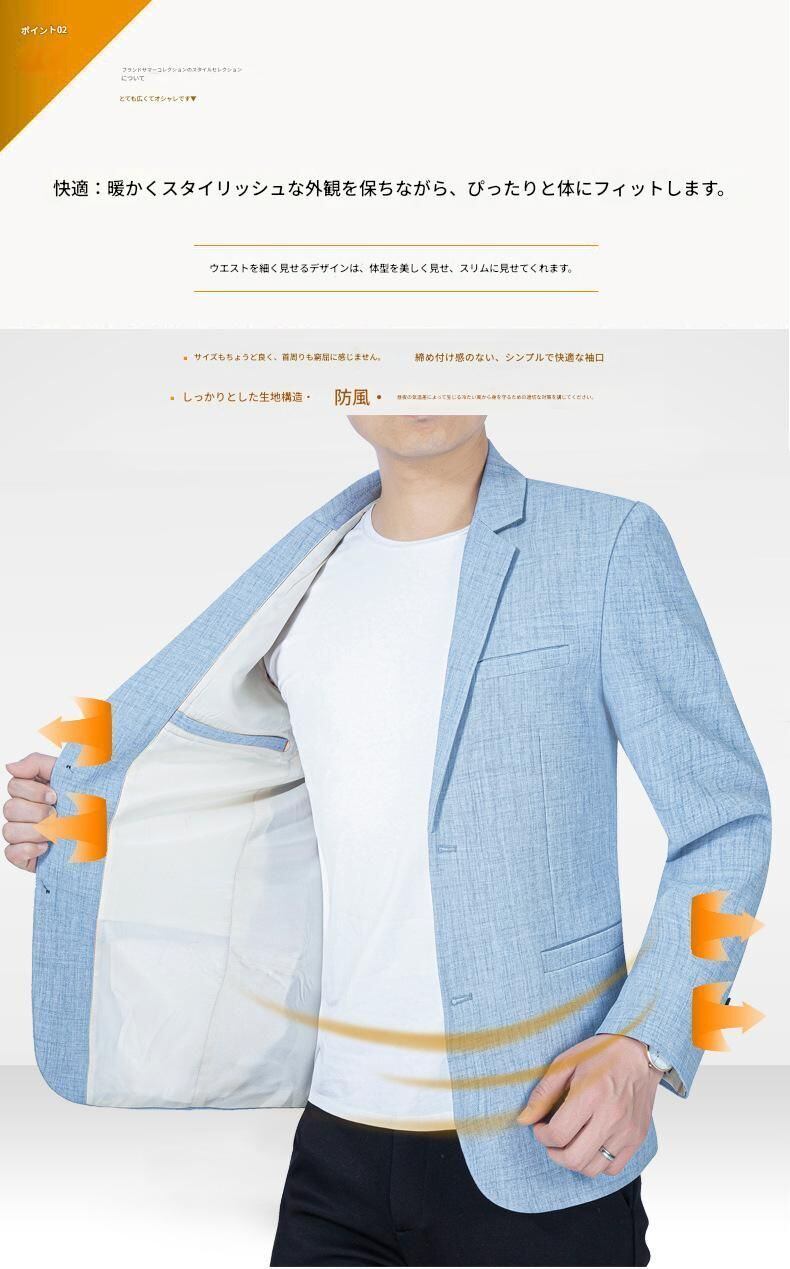 「メンズ 春夏 ブレザージャケット シングルブレスト ノッチドラペル 長袖 軽量 ビジネスカジュアル ワークウェア対応 アウター」をご覧ください!このブレザージャケットは、軽やかで上品なデザインが特徴で、春夏の季節にピッタリな万能アイテムです。シングルブレストとノッチドラペルのスタイルは、ビジネスカジュアルからカジュアルなコーディネートまで幅広く対応。軽量素材を使用しているため、暑い日でも快適に着用でき、忙しいビジネスマンの強い味方となります。このブレザージャケットを取り入れて、あなたのスタイルをワンランクアップさせてみてください!