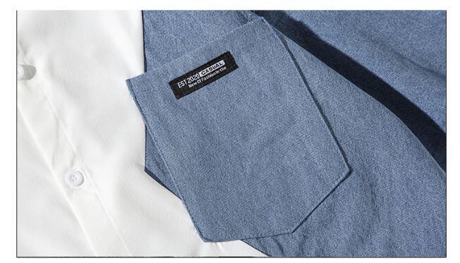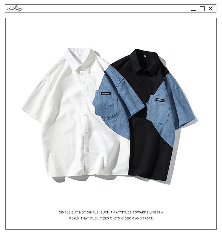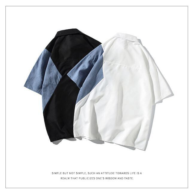 メンズ 半袖シャツ デニムステッチ ルーズフィット INS風 ニッチデザイン ハンサム トレンド カジュアル 夏用トップス