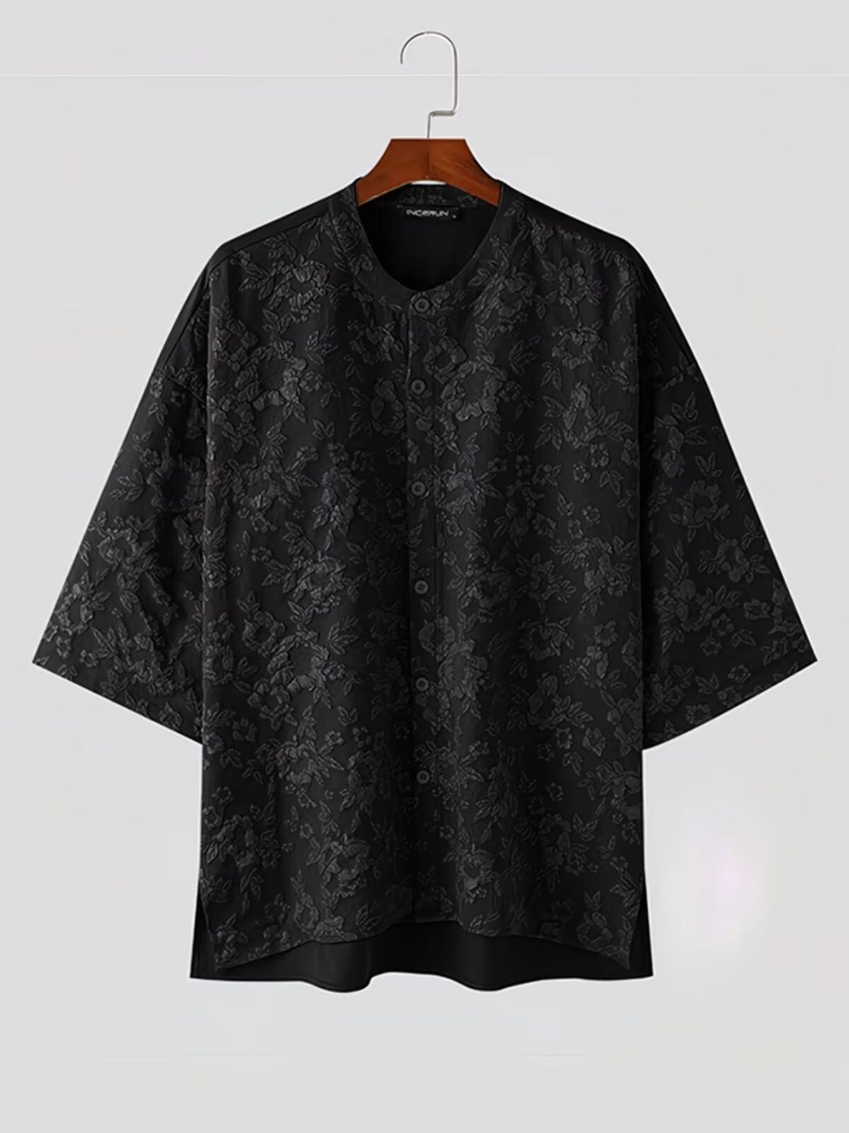 メンズ 七分袖 シャツ カジュアル ルーズフィット ゆったり ジャカード マンダリンカラー バンドカラー 羽織り 春 夏 秋 トップス おしゃれ 無地風 シングルブレスト 大人 中華ファッション 通勤 通学 デイリー アウトドア 薄手 人気