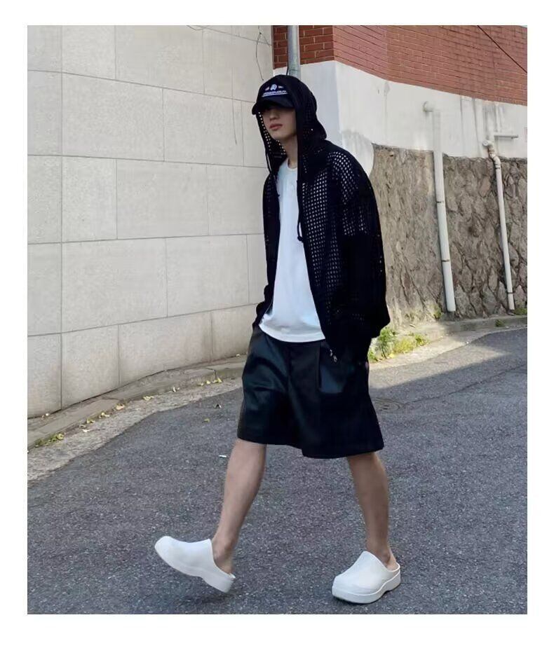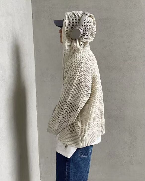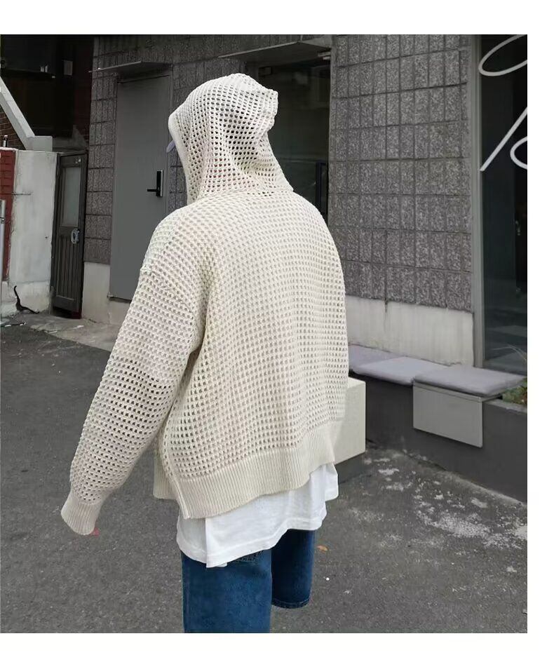 「メンズ サマーパーカー 薄手 メッシュ カーディガン フード付き 透かし編み オーバーサイズ ルーズフィット プラスサイズ 夏用トップス」をご覧ください!このパーカーは、薄手メッシュの素材を使用しており、ひんやりとした涼しさを感じられる一着です。フード付きのデザインはおしゃれさを演出し、オーバーサイズのシルエットはリラックスした着心地を提供します。透かし編みのディテールが夏らしい軽やかさを加え、さまざまなコーディネートに対応可能です。この夏のカジュアルスタイルにぜひプラスしていただきたいアイテムです。この機会にぜひお試しください!