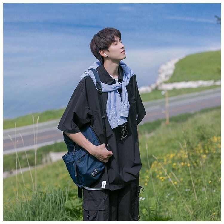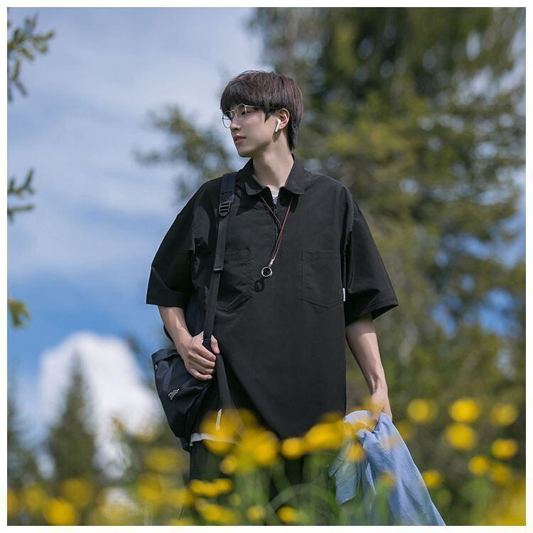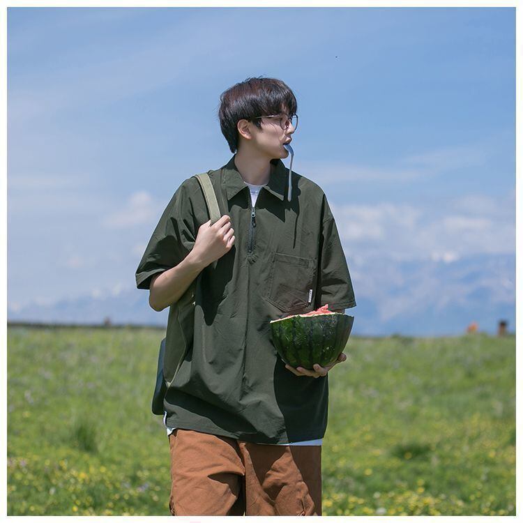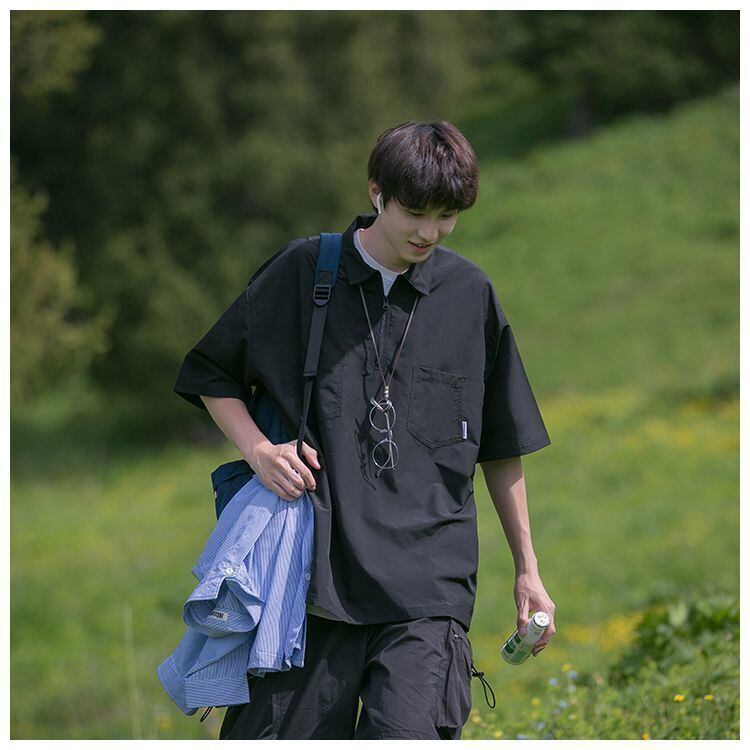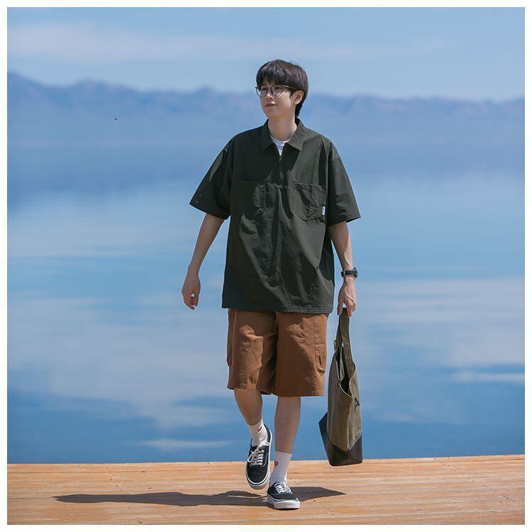 「メンズ サマー ハーフジップ 半袖シャツ 日本風 ワークウェア ターンカラー ルーズフィット カジュアル トレンドトップス 夏用」をご覧ください!この半袖シャツは、日本風のワークテイストを取り入れたデザインが特徴です。ハーフジップのディテールが個性的で、カジュアルなスタイルを演出します。ルーズフィットのシルエットはリラックスした着心地を与え、暑い夏の日でも快適に過ごせるアイテムです。多様なコーディネートが楽しめるので、ぜひクローゼットに加えていただきたい一着です。この機会にぜひお試しください!