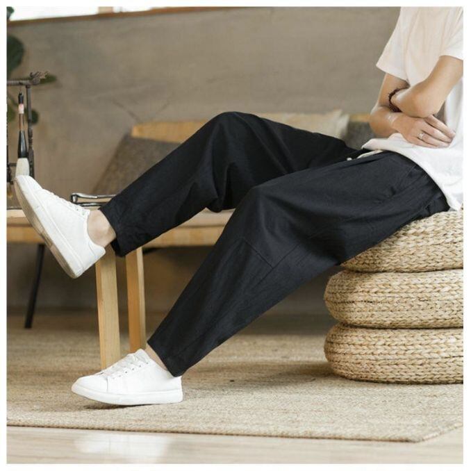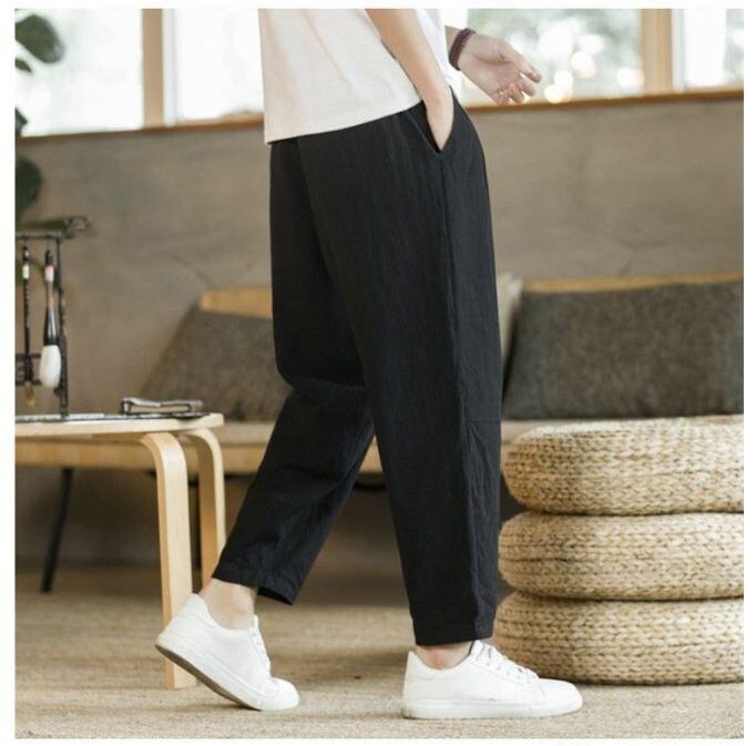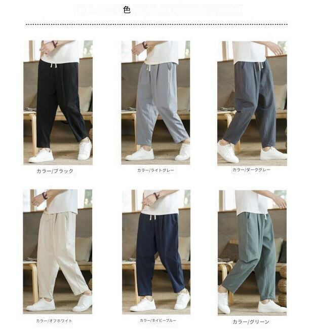 メンズ 夏用 薄手 コットンパンツ ワイドストレート ルーズフィット 大きいサイズ 中華風 カジュアル ロングパンツ 通気性 快適