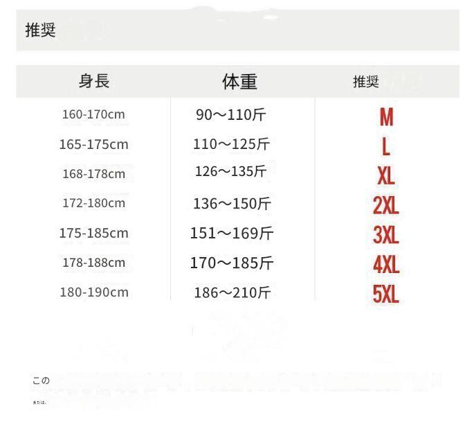 サイズ:M、L、XL、2XL、3XL、4XL、5XL