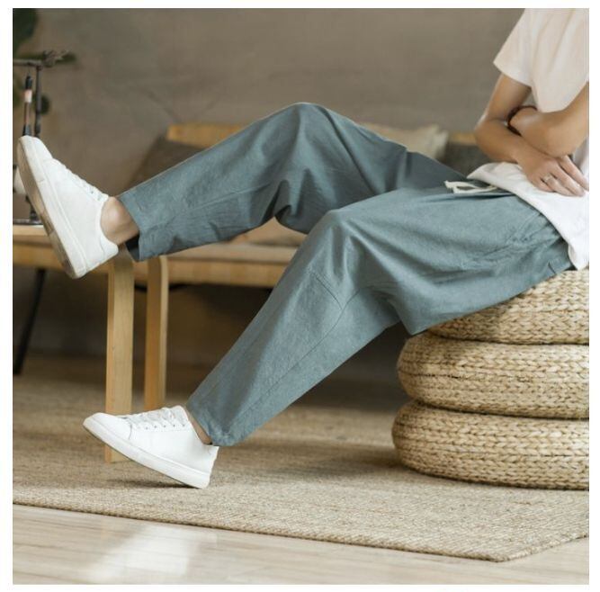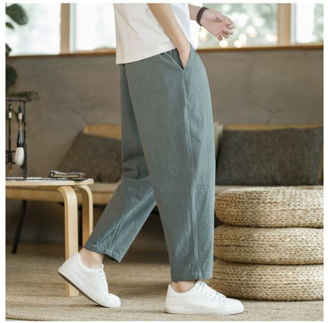 メンズ 夏用 薄手 コットンパンツ ワイドストレート ルーズフィット 大きいサイズ 中華風 カジュアル ロングパンツ 通気性 快適